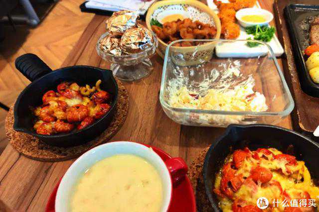 而在小食方面,必胜客这两年力推的小龙虾也被列入到自助菜单中。不过和我们传统意义上理解的麻小不同,必胜客的小龙虾当然是有自身特点的:用芝士焗了。