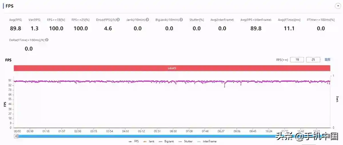 从测试结果来看,升级了HarmonyOS2的Mate40Pro的《王者荣耀》平均帧率可以保持在89.8fps,接近满帧的运行成绩是比较满意的,而且游戏过程中并没有大的帧率波动,整体体验是不错的。