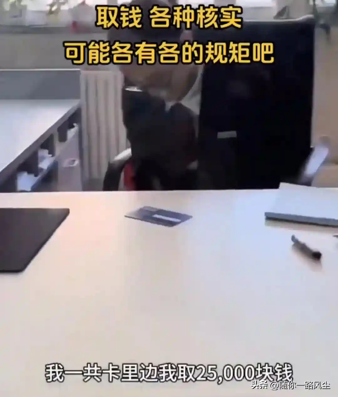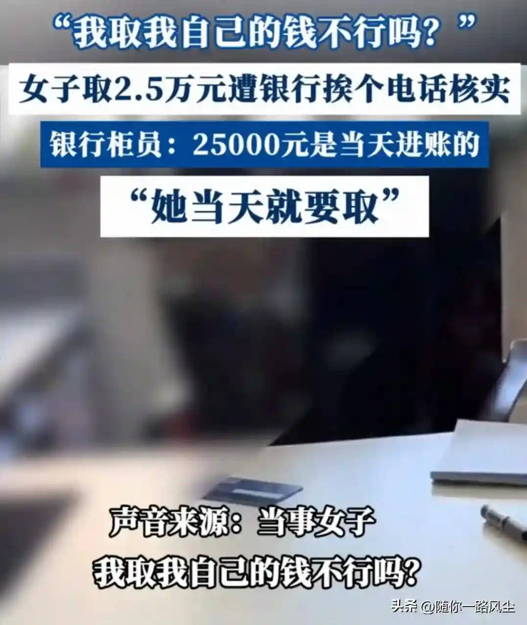 女子气得大声问一名正在打电话的女银行经理:“我不住院,我花自己的钱,为什么就不能取这2.5万元呢?为什么非要耽误我20分钟,连这点钱都取不出来?”