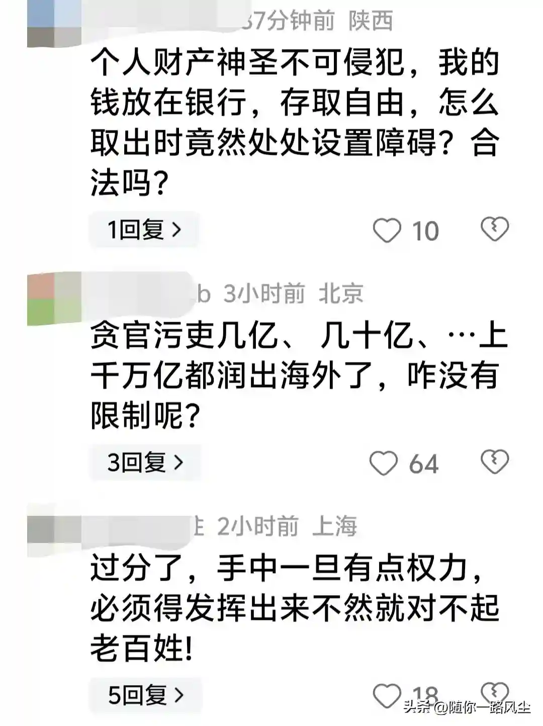 另有网友称:个人财产神圣不可侵犯,我的钱放在银行,存取自由,怎么取出时竟然处处设置障碍?许家印的2.5万亿,每一笔去核实了吗?