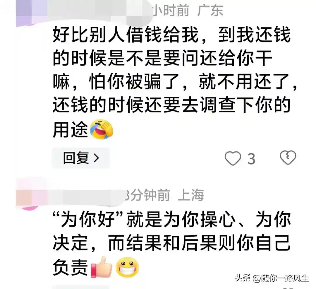 更有网友说:好比别人借钱给我,到我还钱的时候,是不是要问,还给你干嘛?怕你被骗了,就不用还了?还钱的时候,还要去调查下你的用途。