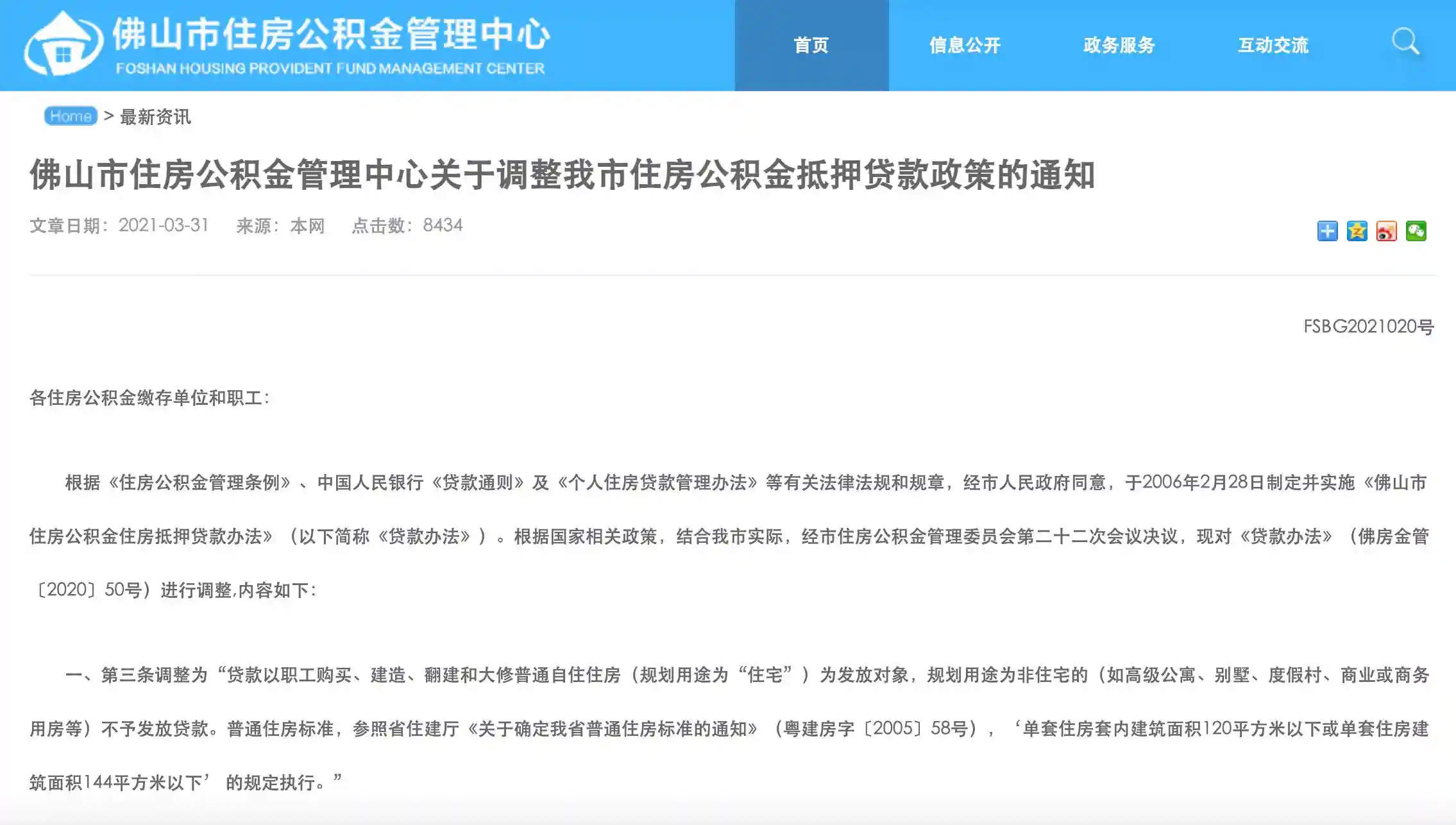 01调整公积金贷款额度最近一个月,佛山率先收紧公积金贷款额度。