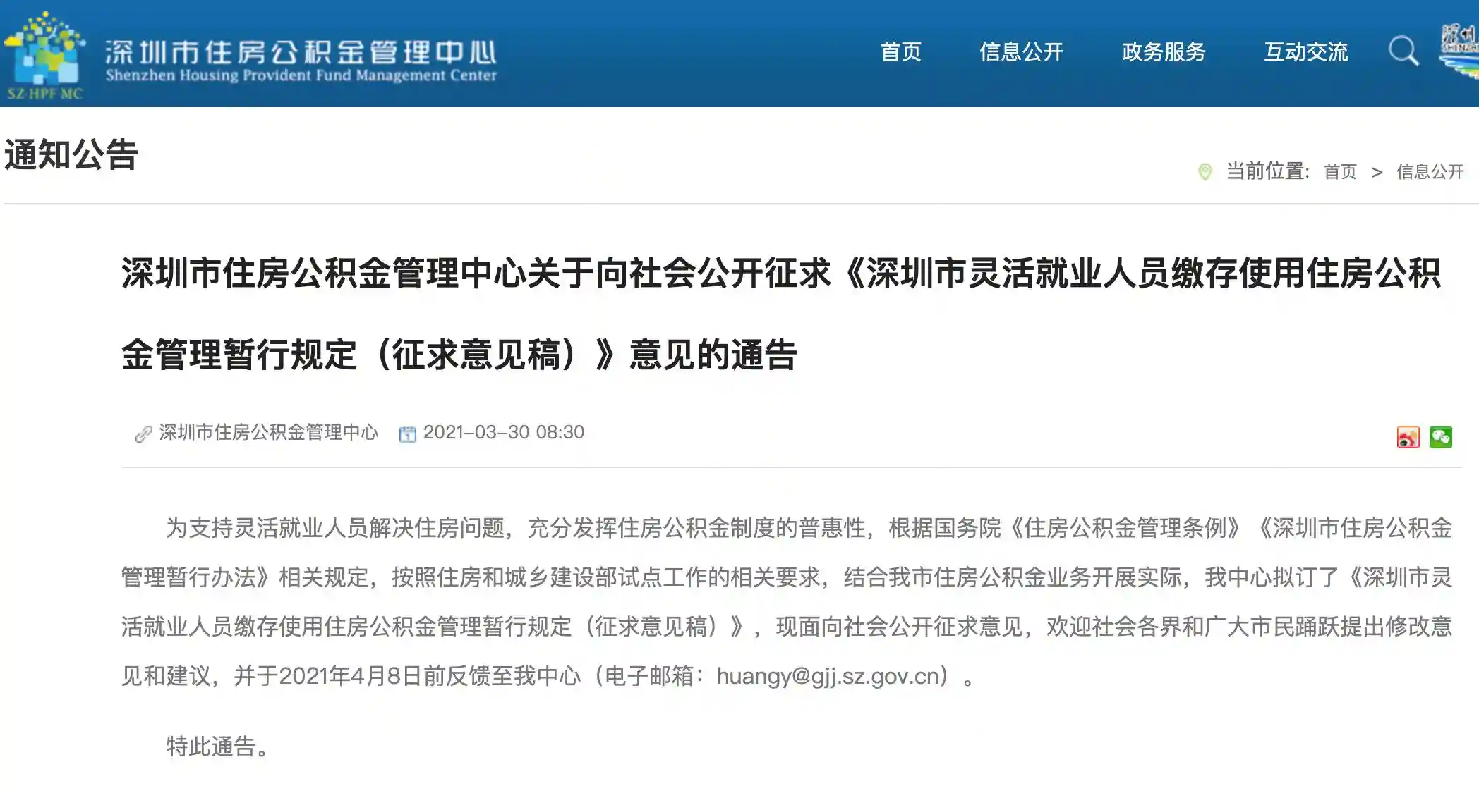 4月6日,深圳发布关于住房公积金管理条例的征求意见稿,拟引入自愿缴存机制,其他用人单位及其职工、个体工商户以及其他灵活就业人员均可按照规定自愿缴存、提取和贷款住房公积金。