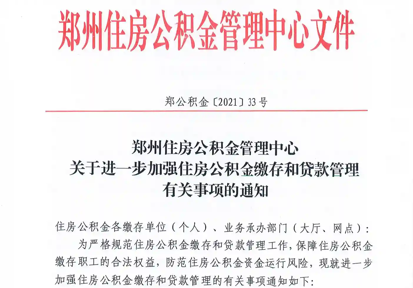 4月12日,郑州住房公积金管理中心印发通知,要求严格规范住房公积金缴存管理、严格审核住房公积金贷款申请、严厉惩处住房公积金违规行为。